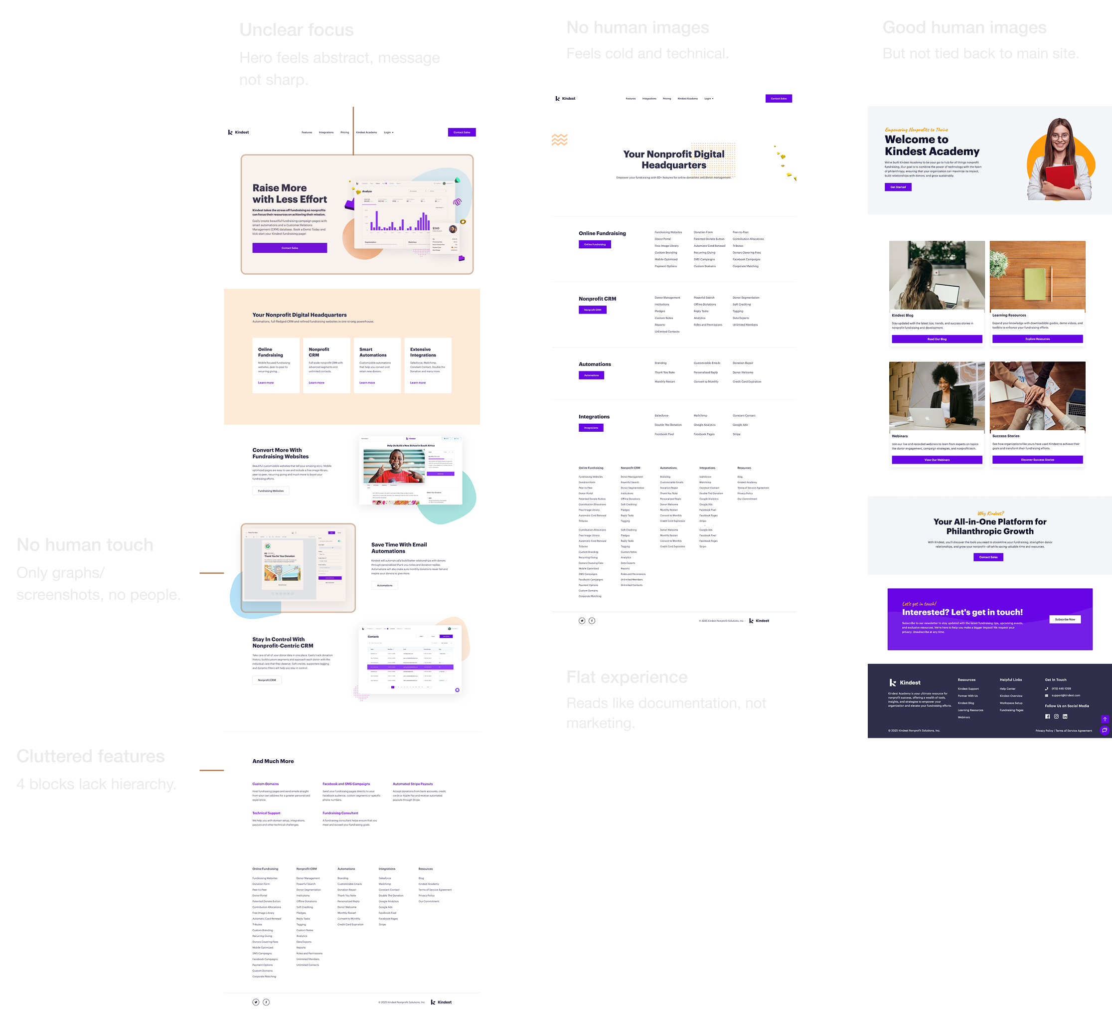 While redesigning Kindest’s website, I identified an opportunity to better showcase their expanding consulting services for non-profits and integrate their Academy of tools more seamlessly into the user experience.